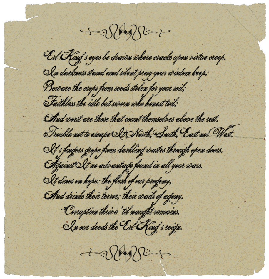 A glance, a hope, a nightmare hour. Reach with the child that will not cower. Stalk with the woodsmen and suffer no foe. Fight by the man who will not let go. Seethe with the warlords in the Erl-King's fetid hall. Feast with the Lord of Corruption and fall and fall and fall...This is a short story from the world of Crastor's Fifth, wherein mere mortals set themselves to war with the gods that fester and scheme in the ruins of the ancient world. It is but a glimpse of the Cycle of Rook & Tower.